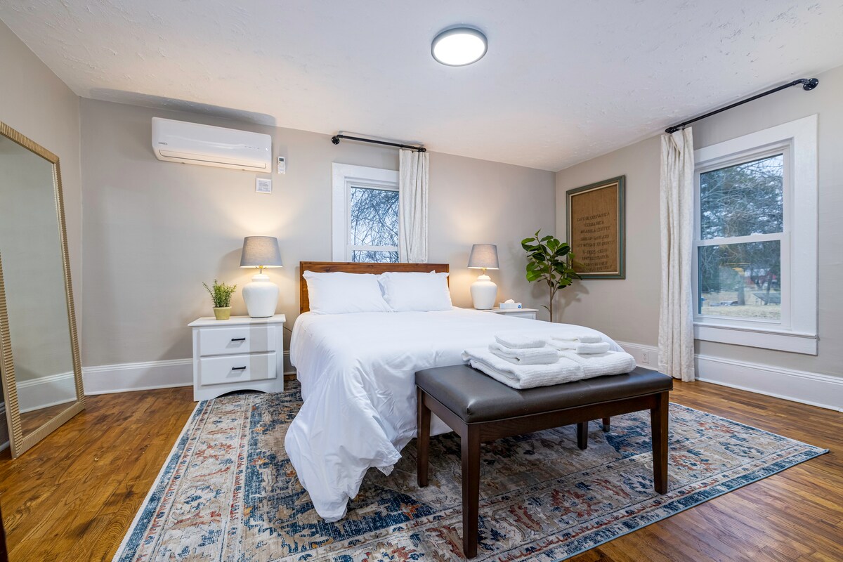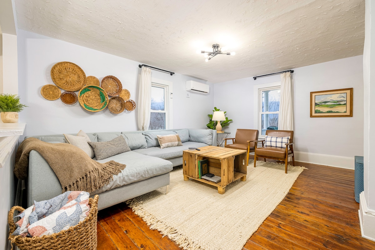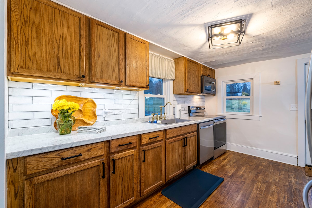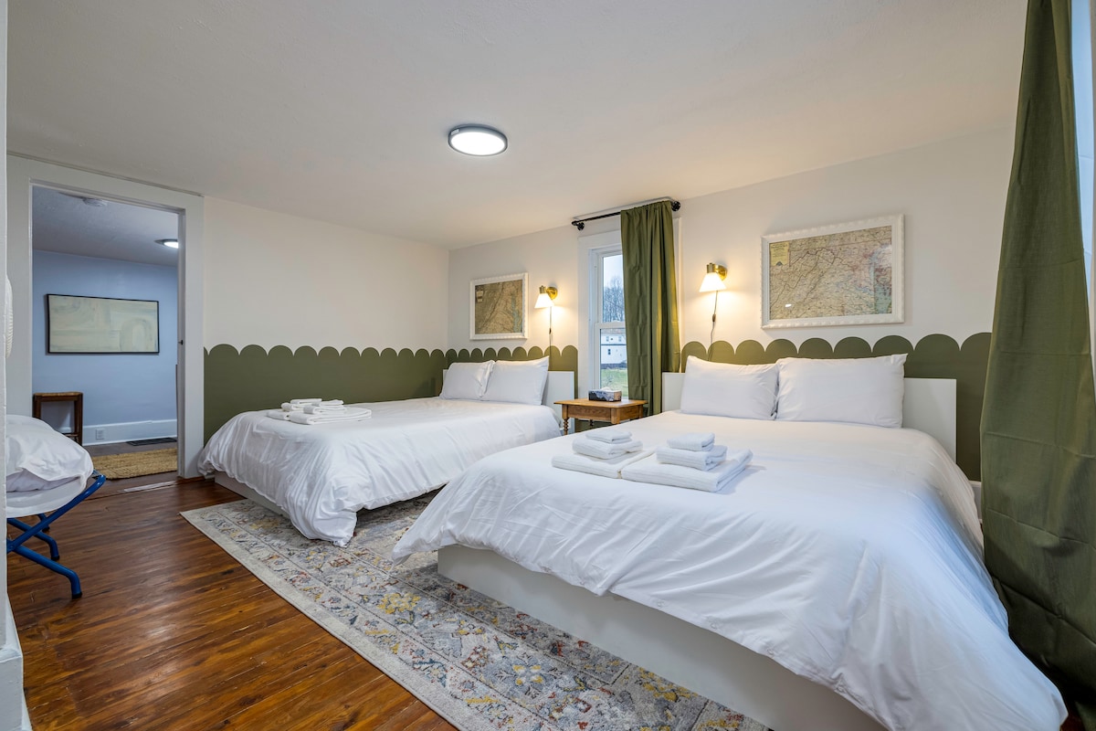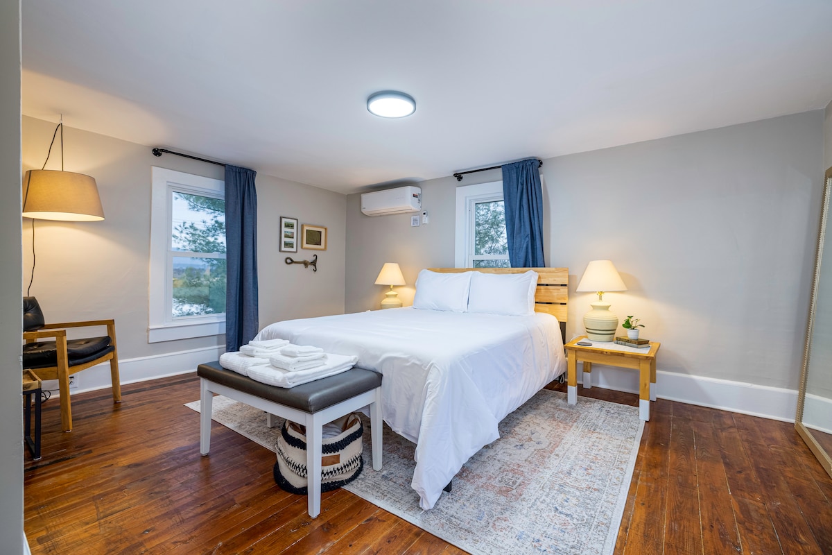 LurayWelcome to The Orchard! Enjoy a 104-year-old home in Luray, VA- recently renovated for a modern stay with a hot tub. The home sits on 1 acre of quiet land with a variety of fruit trees, horseshoe pits and a volleyball net. Surrounded by neighboring farms, it's 4 mins from Luray Caverns, Walmart & 18 mins from Shenandoah National Park. Relax on the covered front porch overlooking mountains, eat a meal on the side porch, sit around the firepit, enjoy the cozy living & dining rooms, designed bedrooms, game room & stocked kitchen!